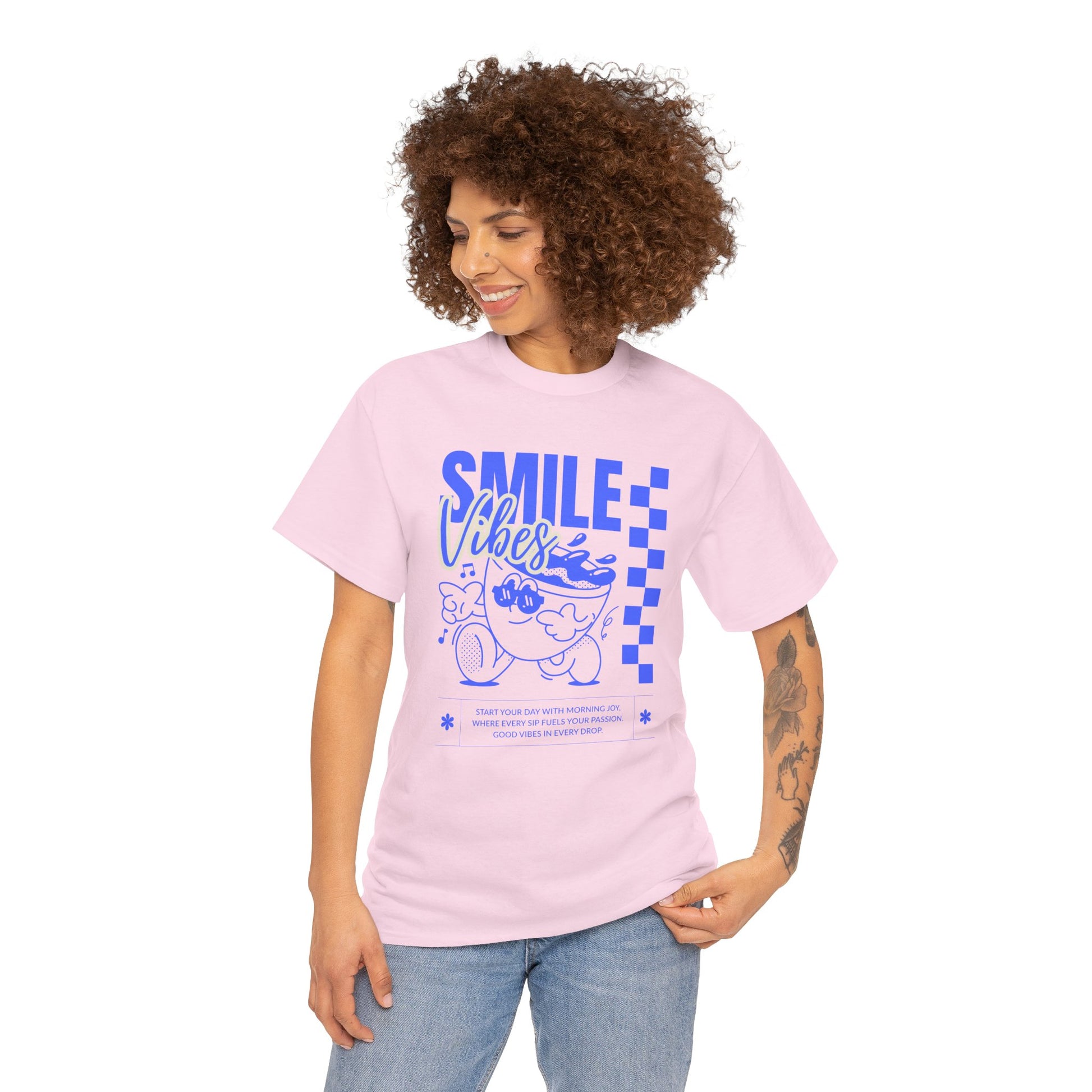 Smile Vibes Unisex Heavy Cotton Tee, Cute Graphic T-Shirt, Casual Wear, Gift for Friends, Summer Vibes, Streetwear Fashion