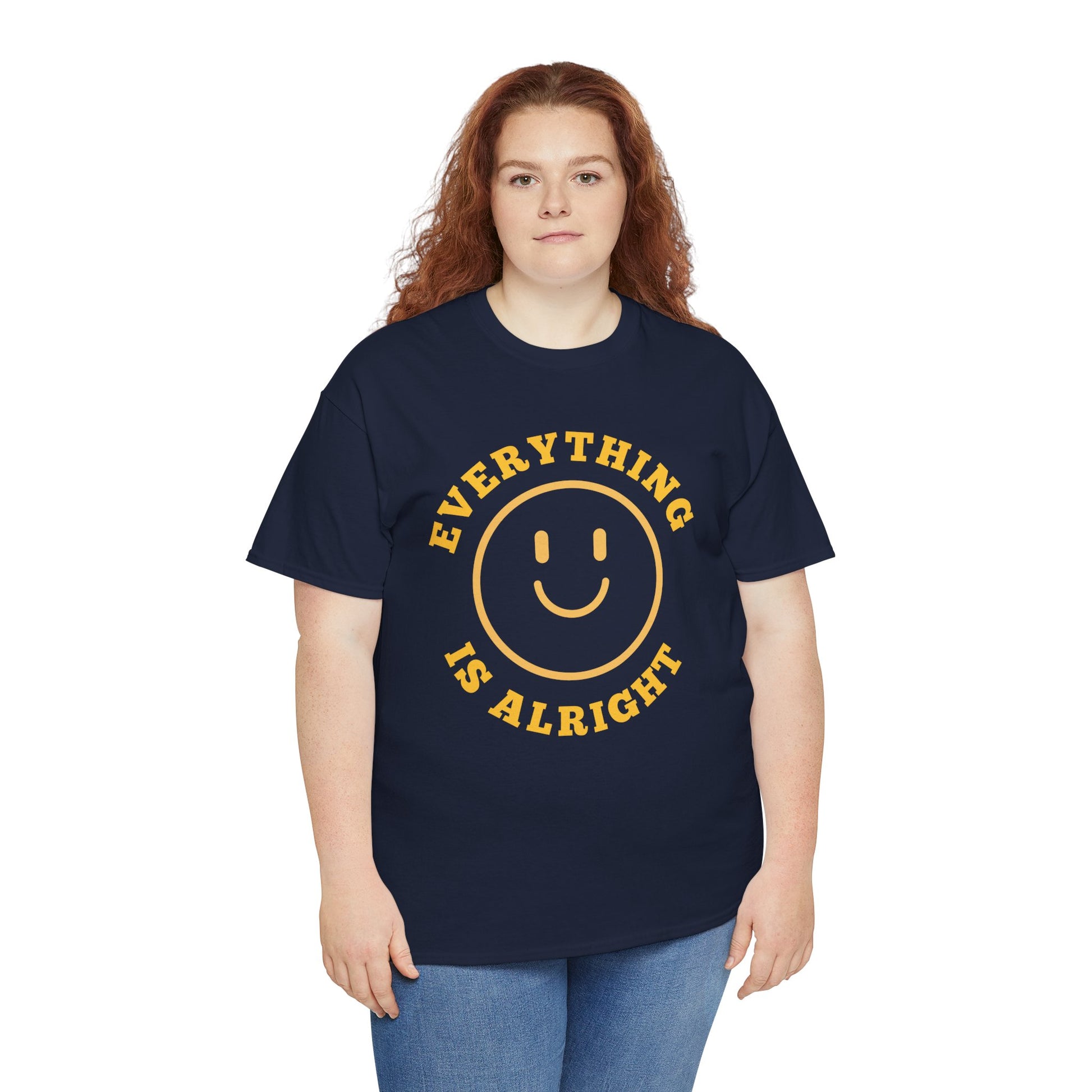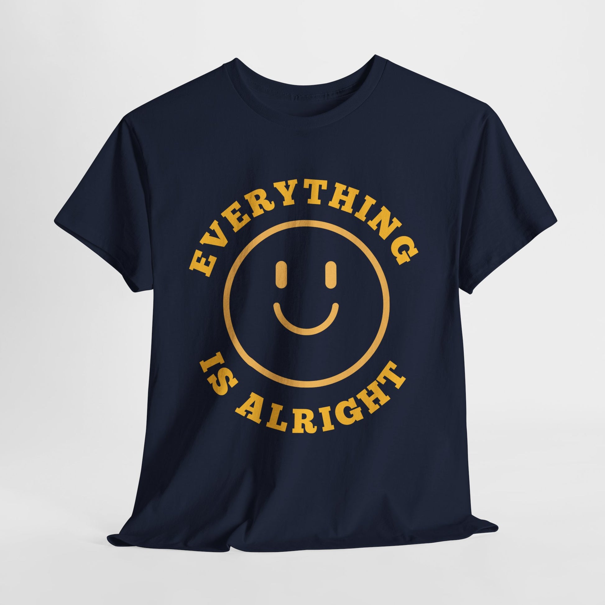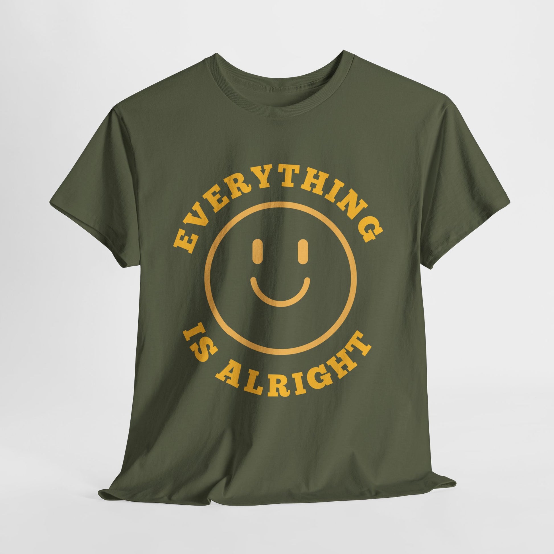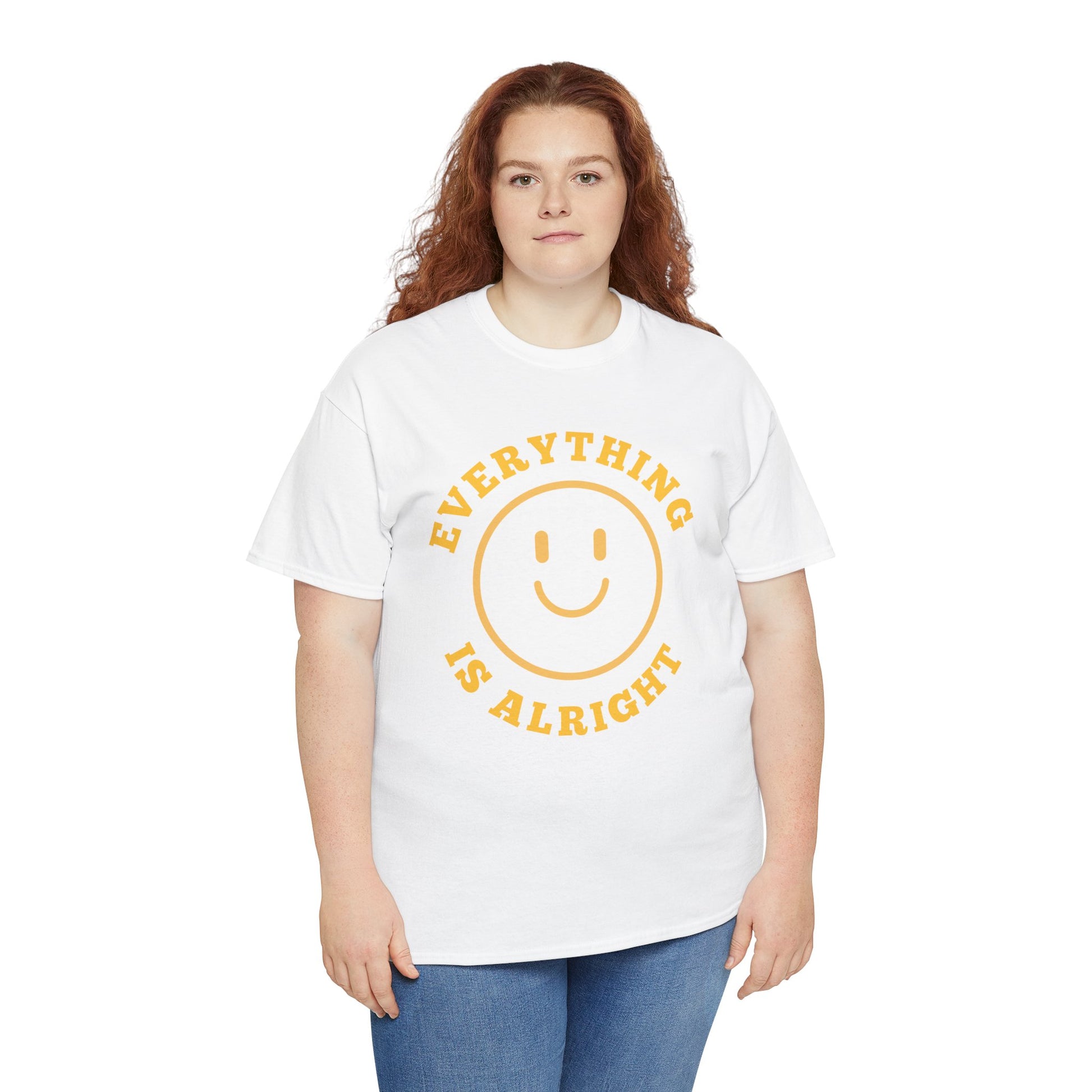 Unisex Heavy Cotton Tee - "Everything is Alright" Smile Graphic, Positive Vibes Shirt, Casual Wear, Gift for Friends, Everyday Essentials